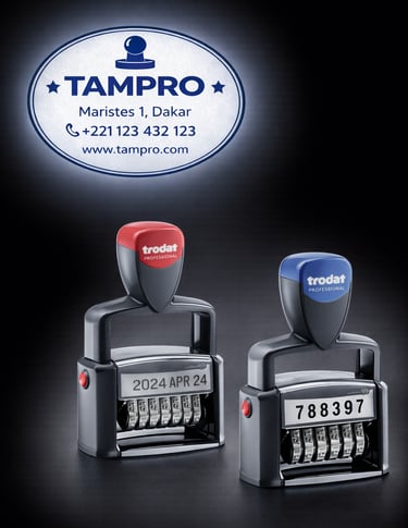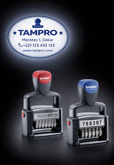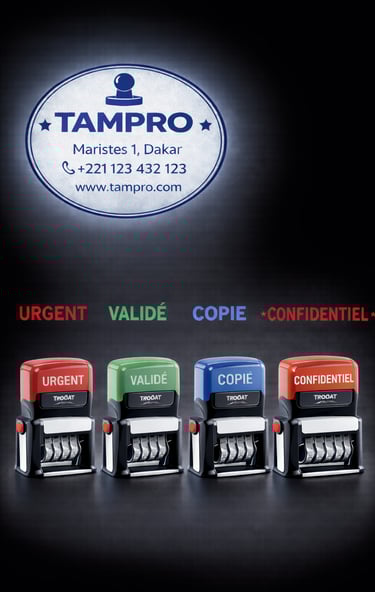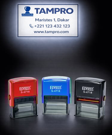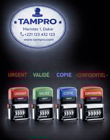 Des tampons professionnels adaptés aux besoins des entreprises et administrations. Idéal pour un usage intensif au bureau, le mécanisme pivote pour encrer l'empreinte automatiquement à chaque pression
