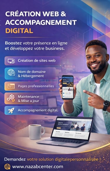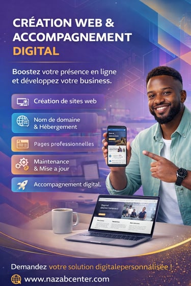 Chez NAZA Business Center, nous mettons notre expérience et notre savoir-faire au service des entreprises, organisations et entrepreneurs. Notre équipe vous accompagne à chaque étape de votre projet : conception, réalisation et mise en œuvre de solutions adaptées à vos besoins